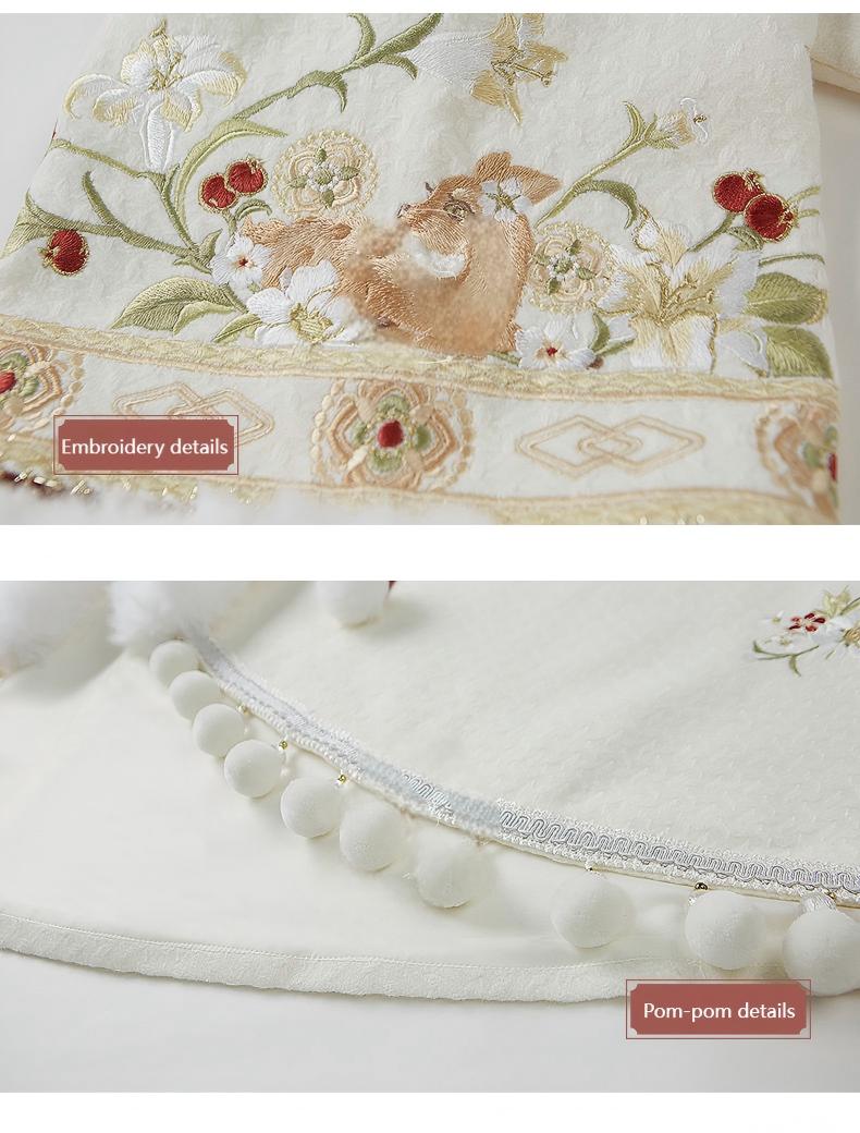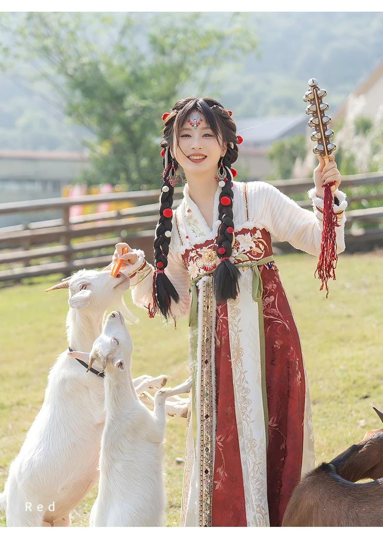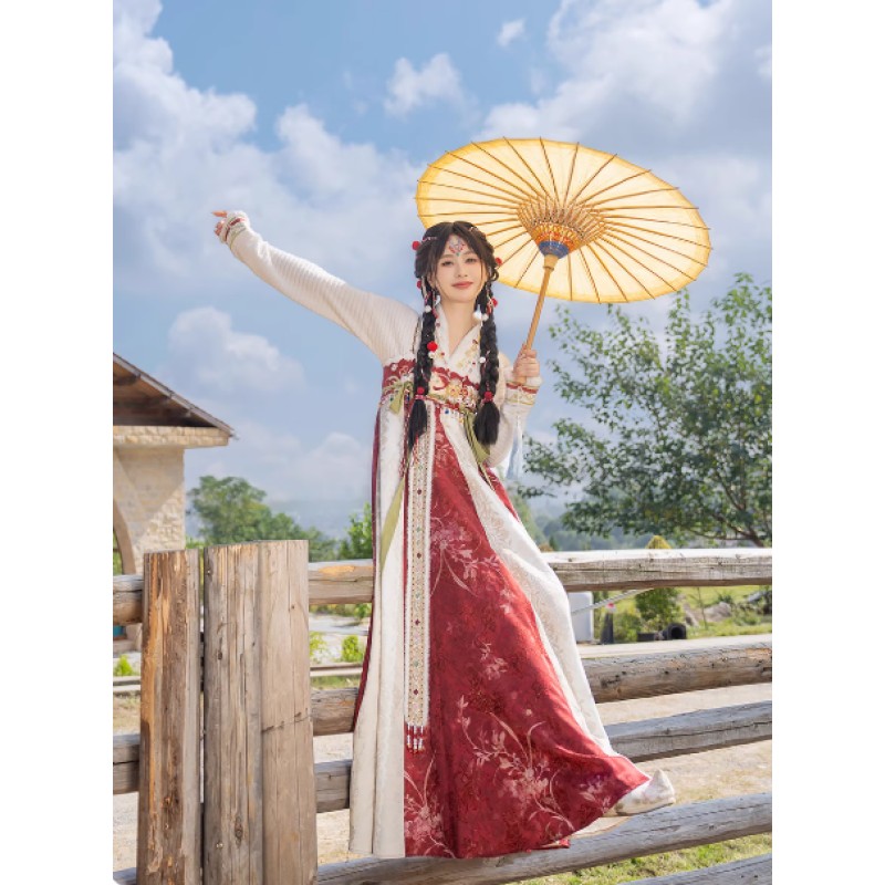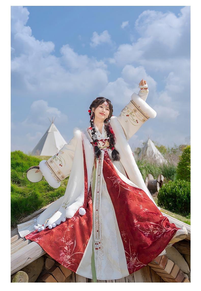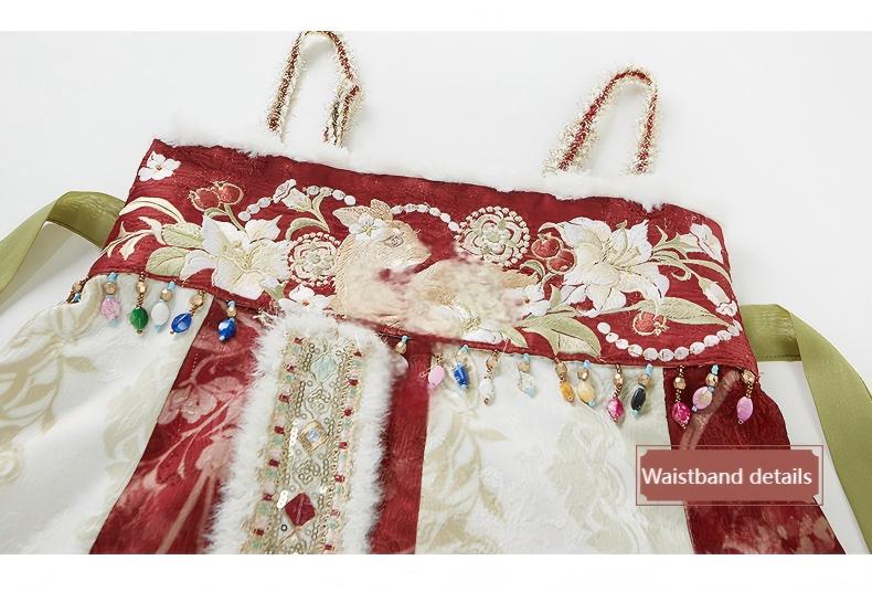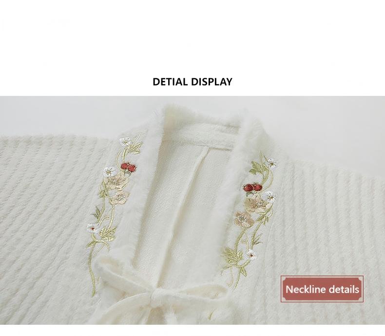 Embrace the elegance of classic Chinese style with this modernized chest-high Hanfu set, designed for comfort, warmth, and style during autumn and winter. This set includes three pieces: a warm cape coat and a two-piece chest-high outfit, combining traditional charm with contemporary wearability.