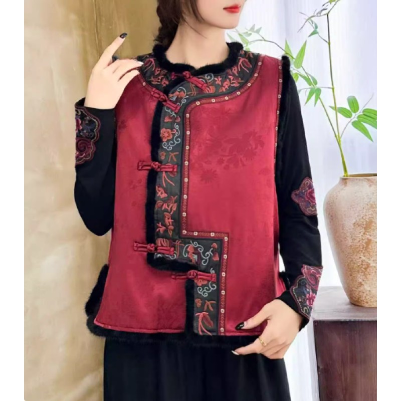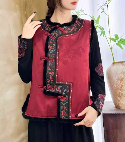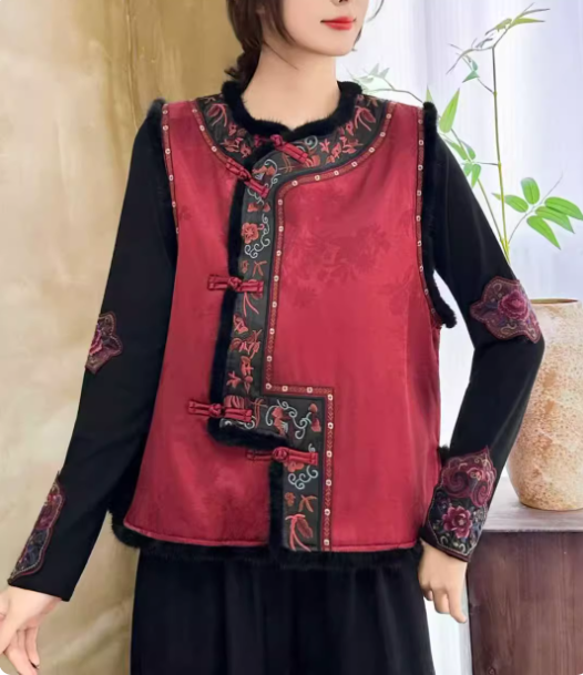 Ideal for commuting or casual outings, this vest offers an effortless way to add a touch of oriental sophistication to your wardrobe. Available in red and black, one size fits most.