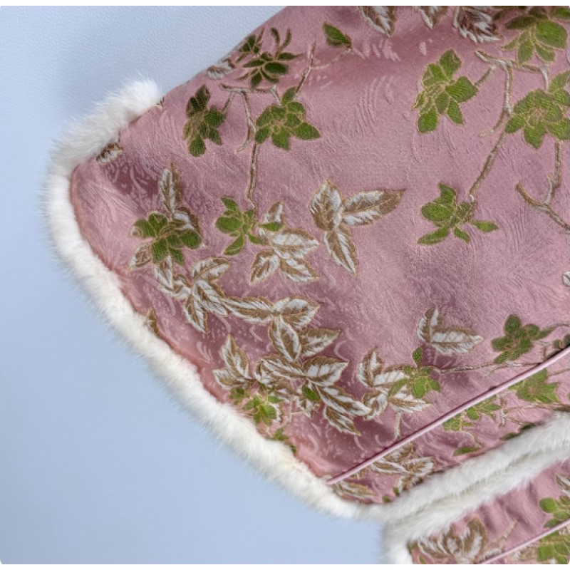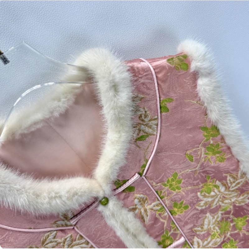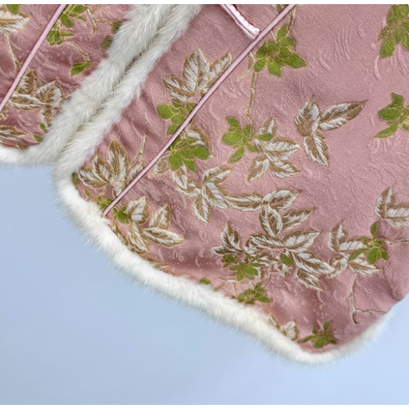 This traditional Chinese style vest perfectly combines classic cloud brocade craftsmanship with modern fashion elements, exuding a unique oriental elegance. Made from a high-quality blend of 40% mulberry silk, 37% wool, and 23% other materials, it offers a soft and delicate touch, excellent warmth, and a lightweight, comfortable feel. The patchwork design seamlessly incorporates mink fur and camel hair, adding luxurious texture and layered sophistication, making every detail radiate refinement.