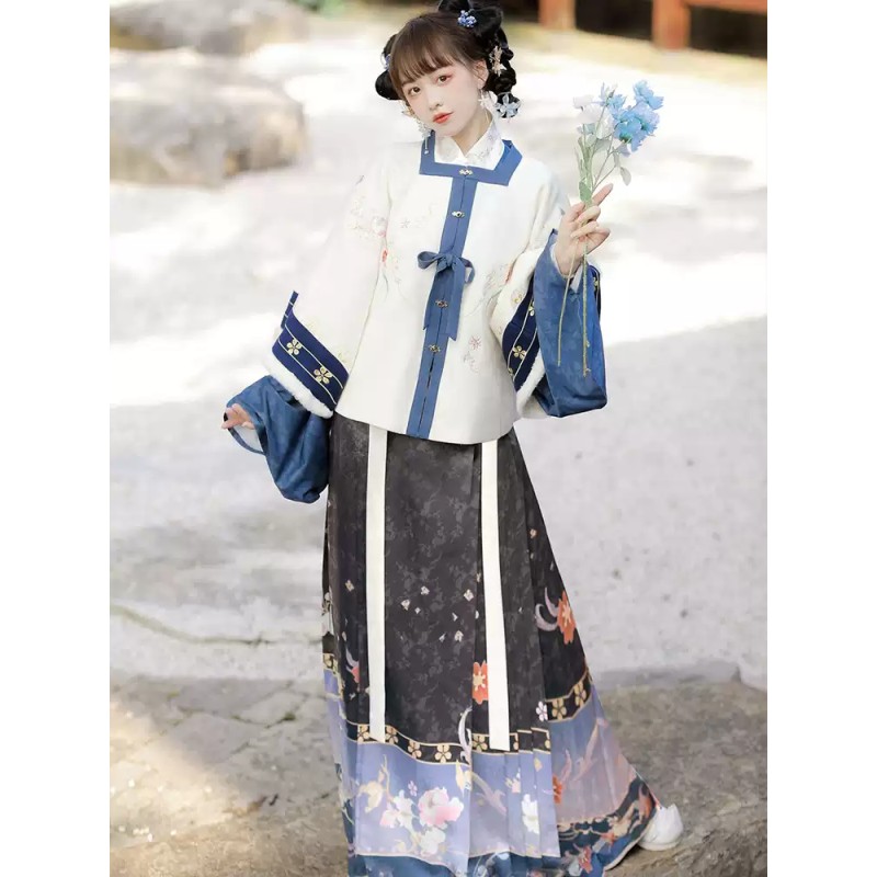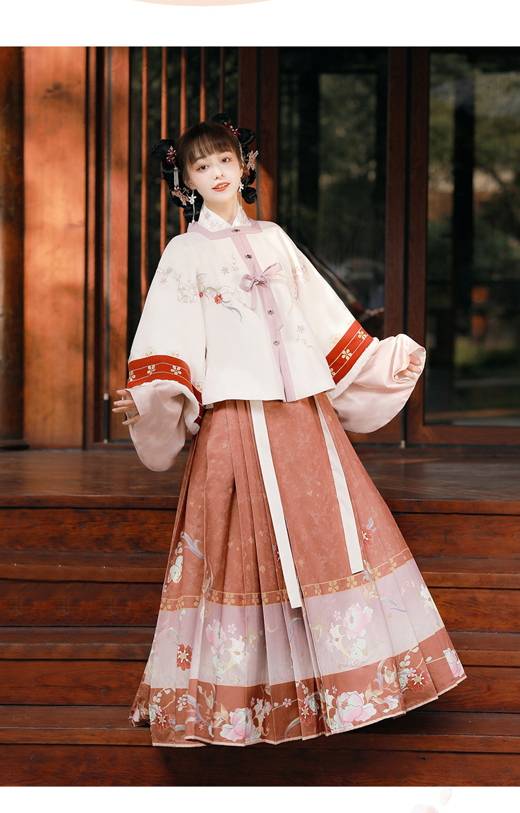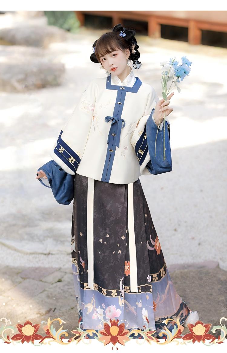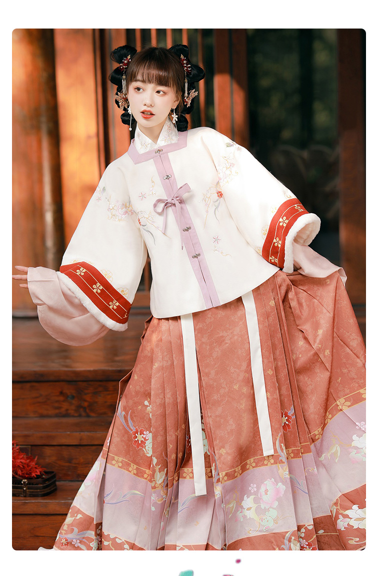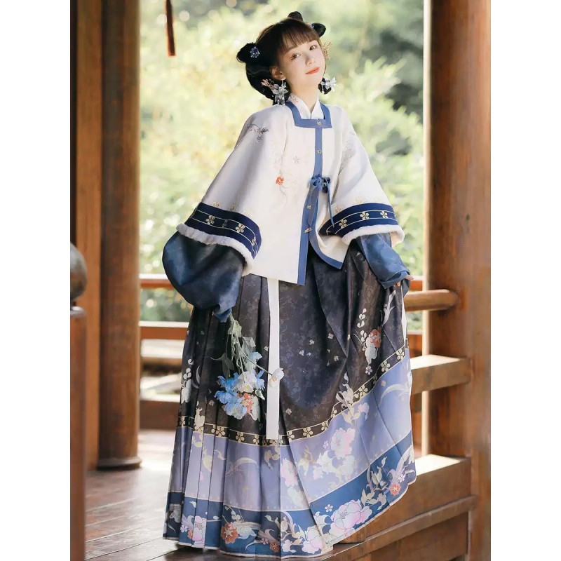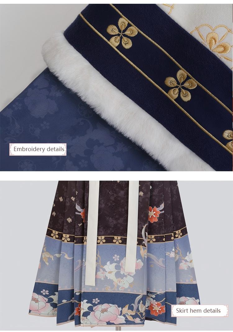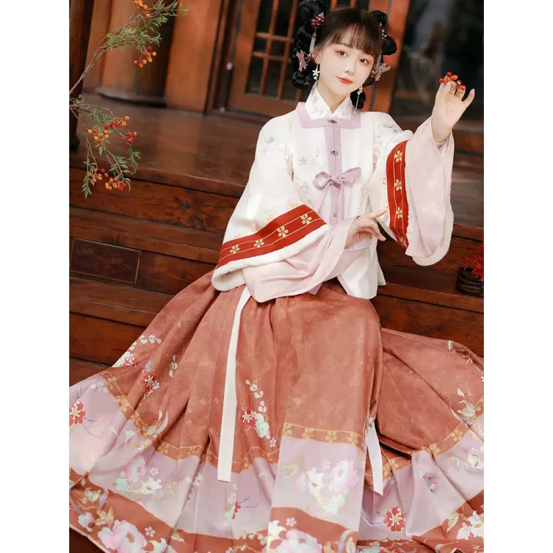 Women's Thickened Winter Hanfu Set (Square-Collar Jacket + Ma-Mian Skirt)