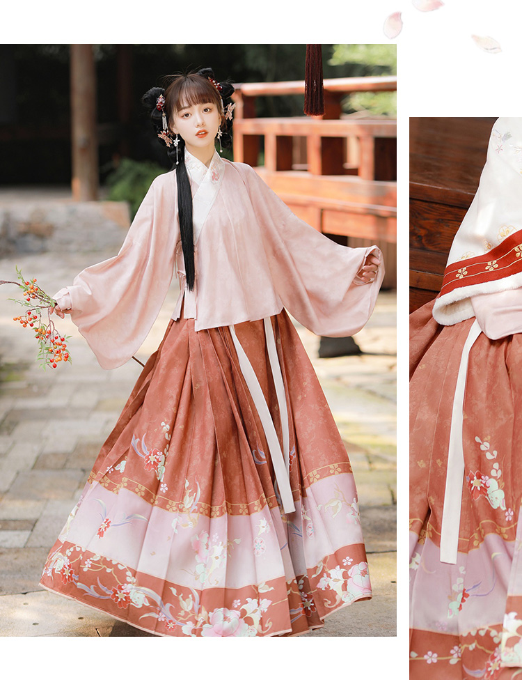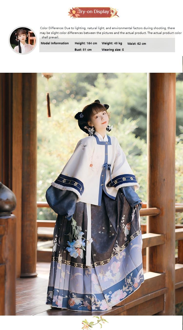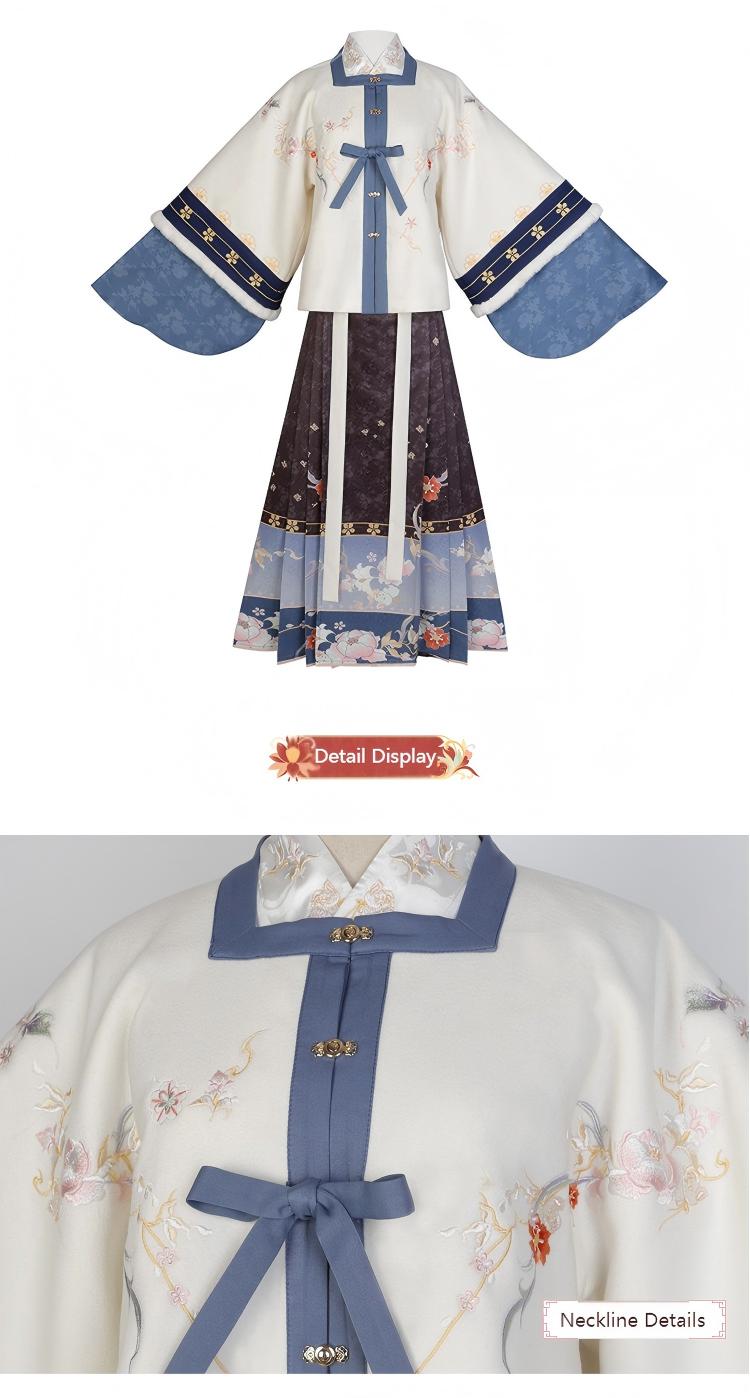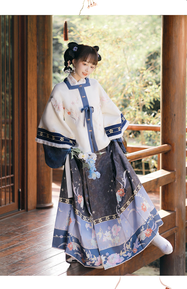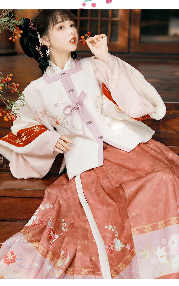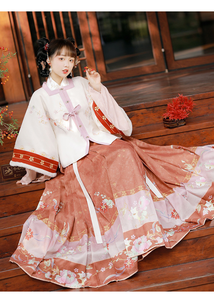Women's Thickened Winter Hanfu Set (Square-Collar Jacket + Ma-Mian Skirt)