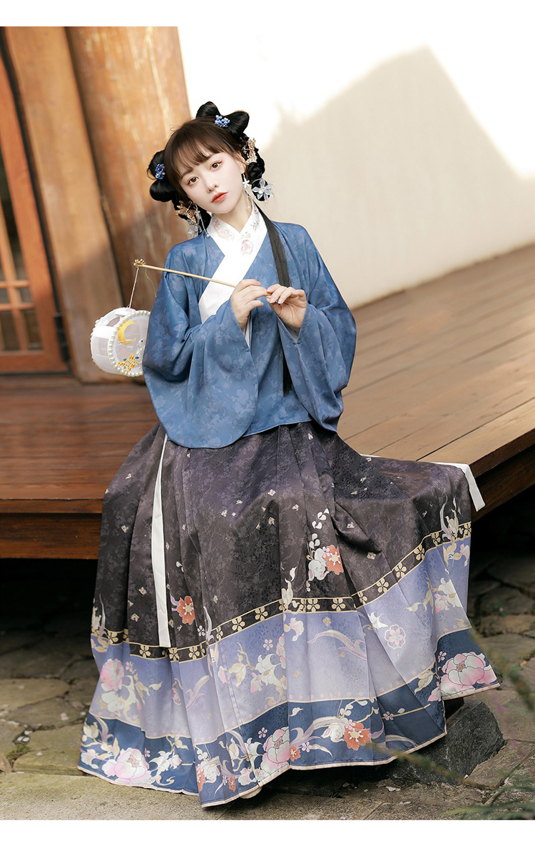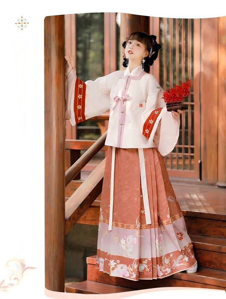 Traditional Design: Square-collar jacket paired with classic Ma-Mian skirt for an elegant, vintage look.