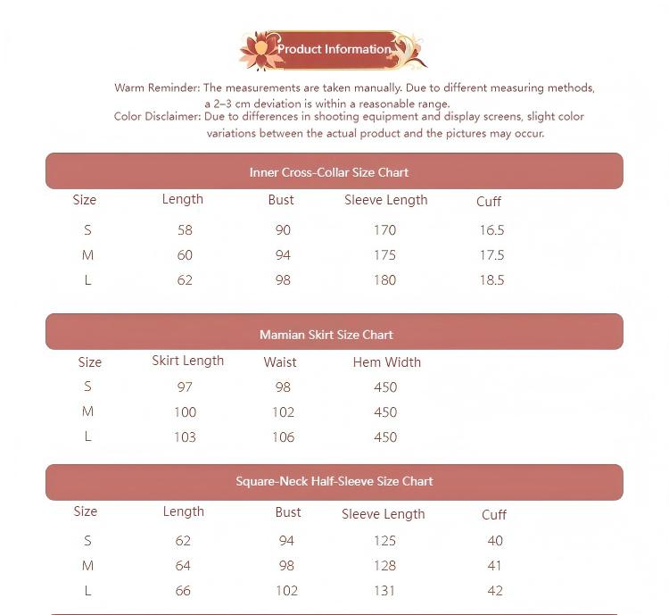 Complete Set: Includes short-sleeve top, upper Ru, and skirt — easy to wear with no extra matching needed.