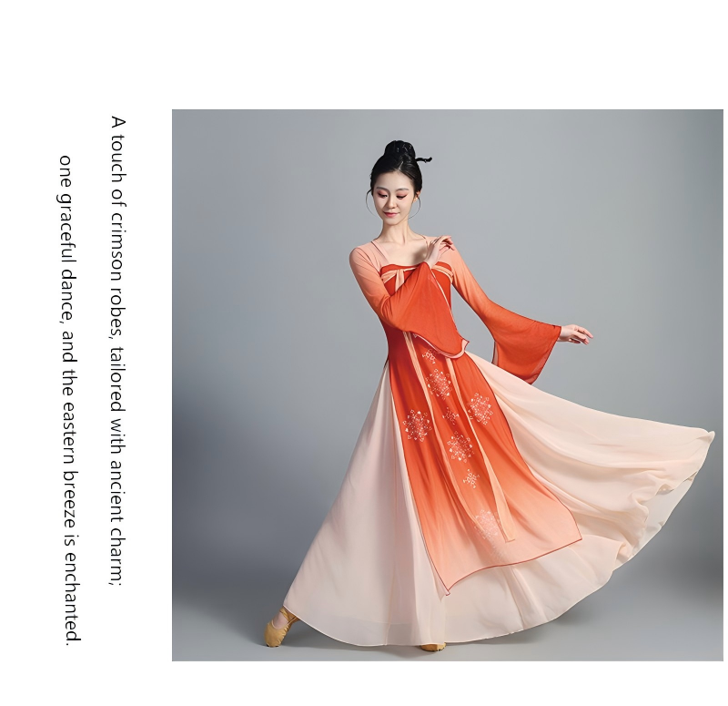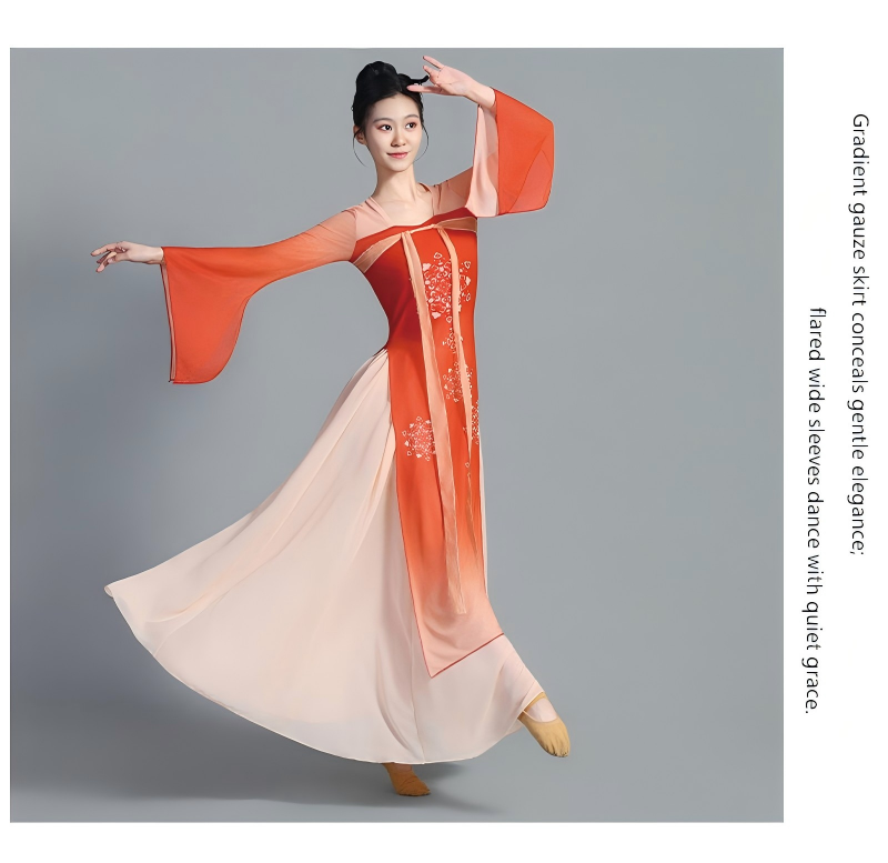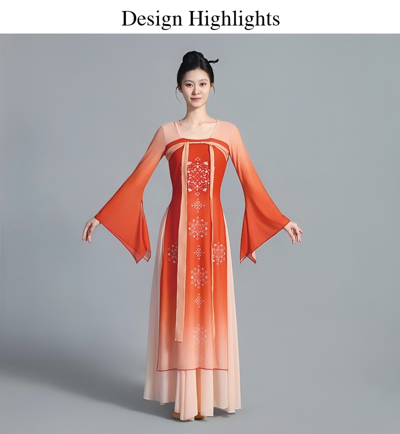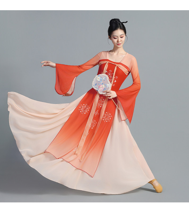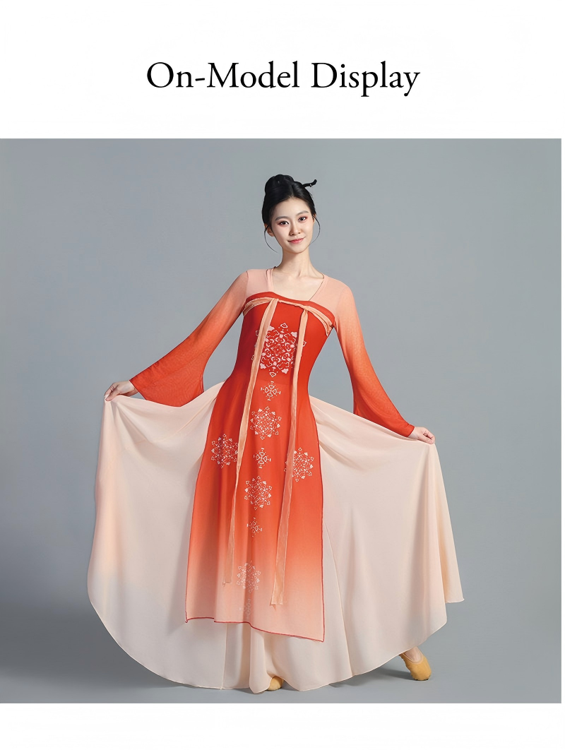 The wide skirt spreads naturally while dancing, producing a graceful and cloud-like visual effect on stage. Designed for both performance and practice, the costume offers a comfortable fit and freedom of movement, making it suitable for classical dance, Han-Tang dance, stage performances, dance training, and photoshoots.
