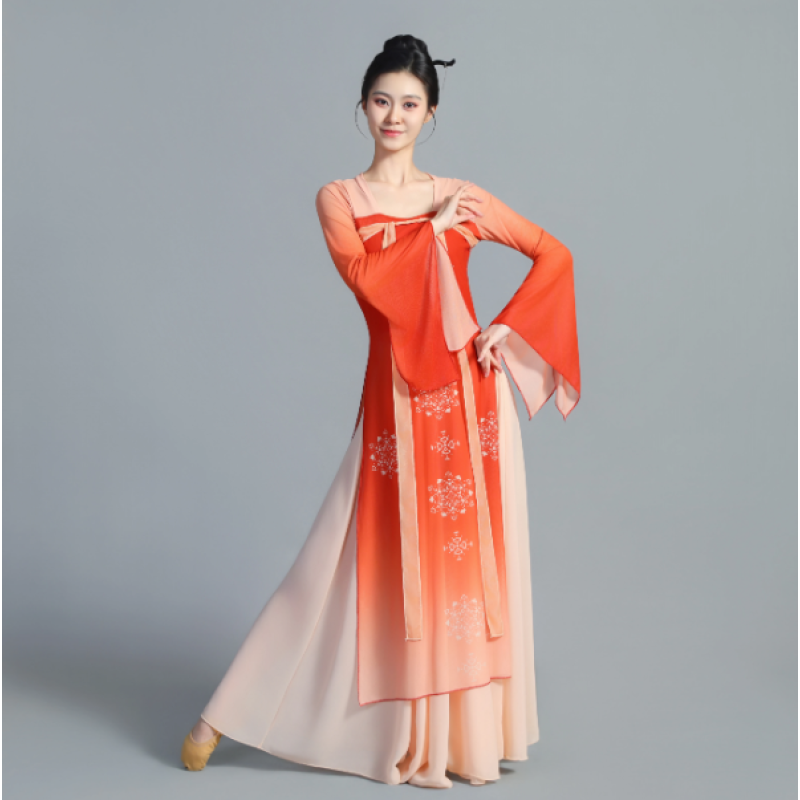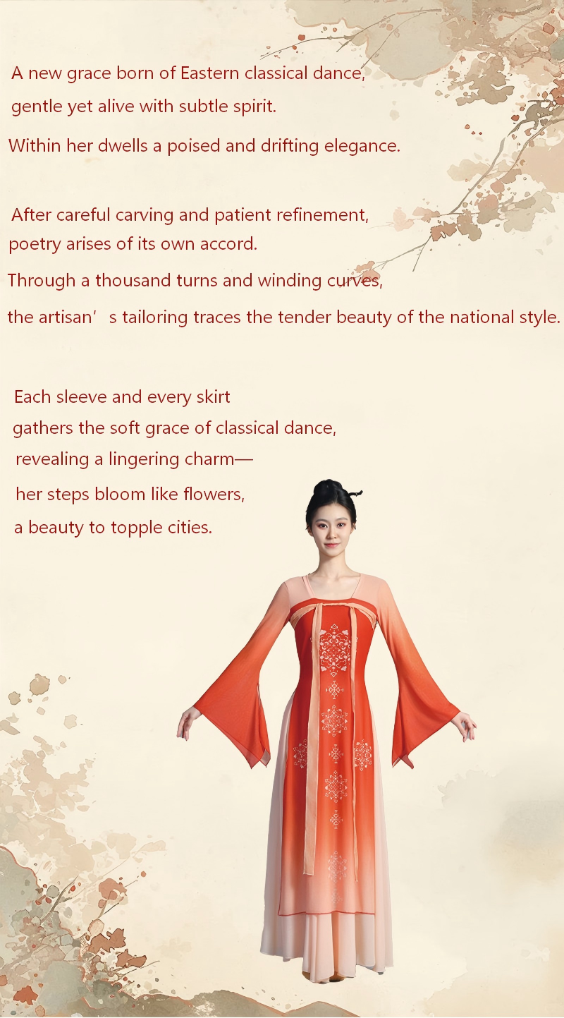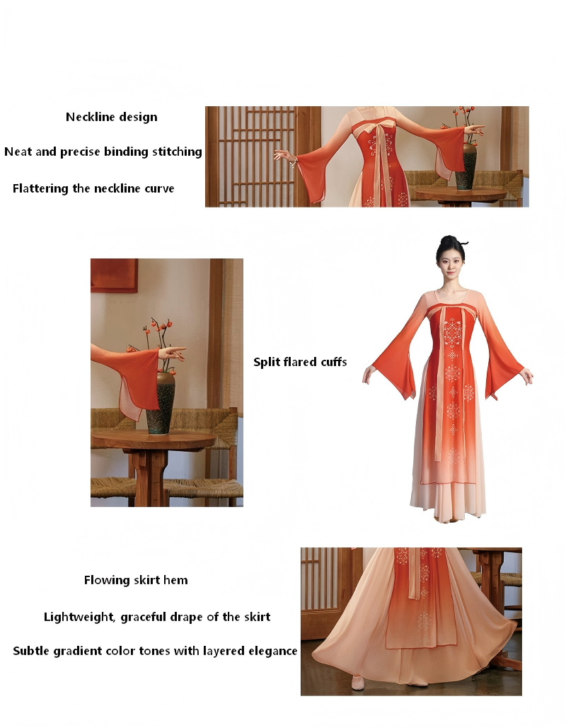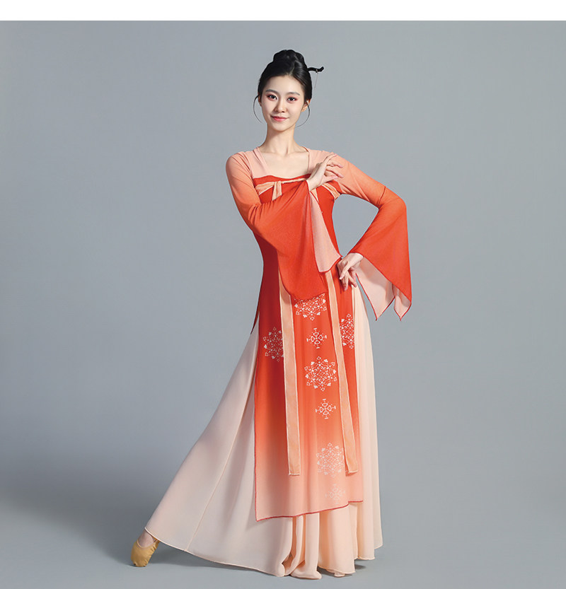 The wide skirt spreads naturally while dancing, producing a graceful and cloud-like visual effect on stage. Designed for both performance and practice, the costume offers a comfortable fit and freedom of movement, making it suitable for classical dance, Han-Tang dance, stage performances, dance training, and photoshoots.