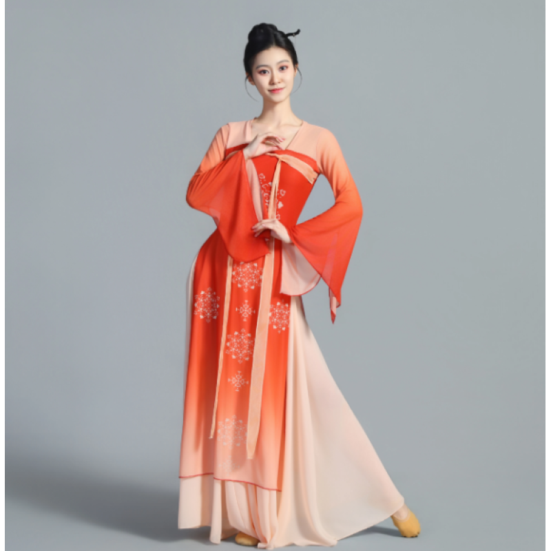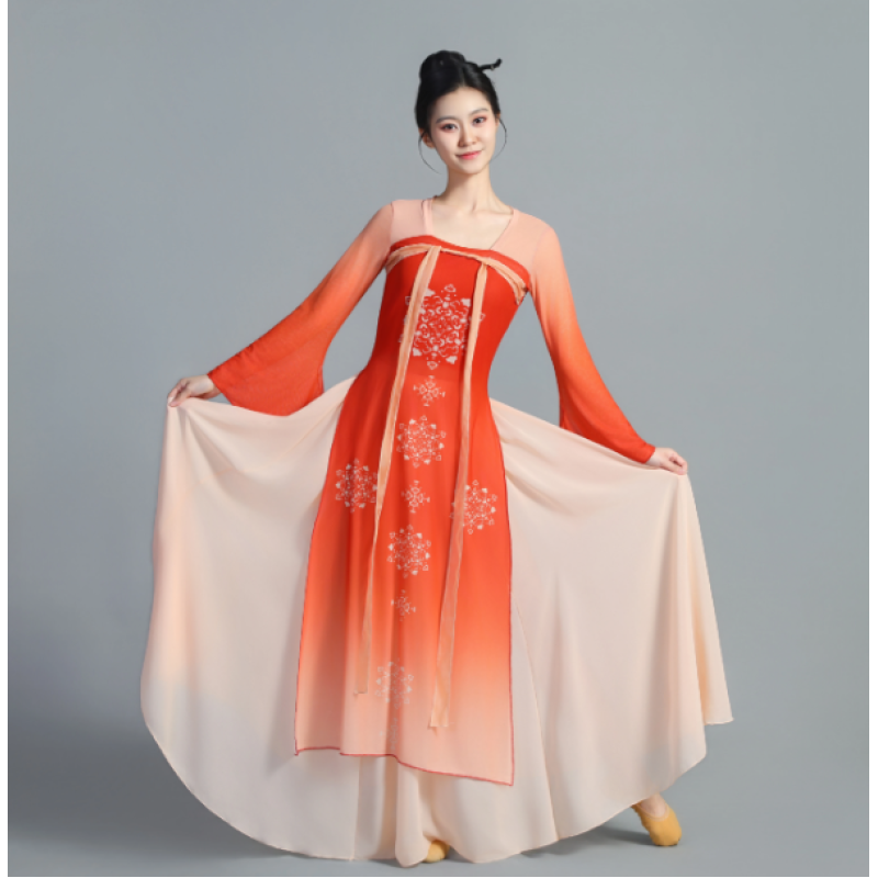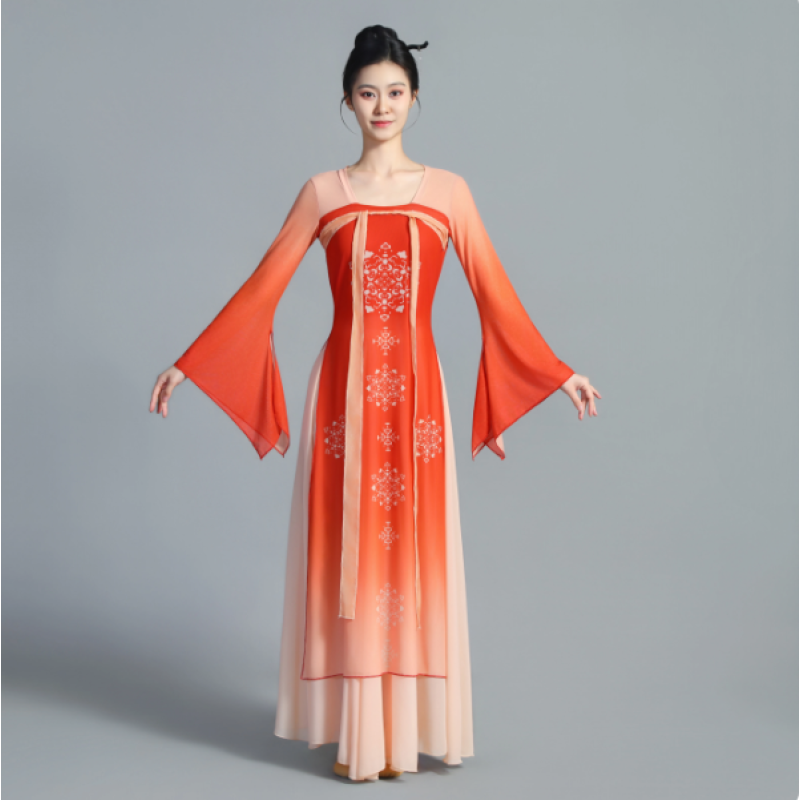 Han-Tang Style Classical Dance High-Waist Chiffon Performance Dress