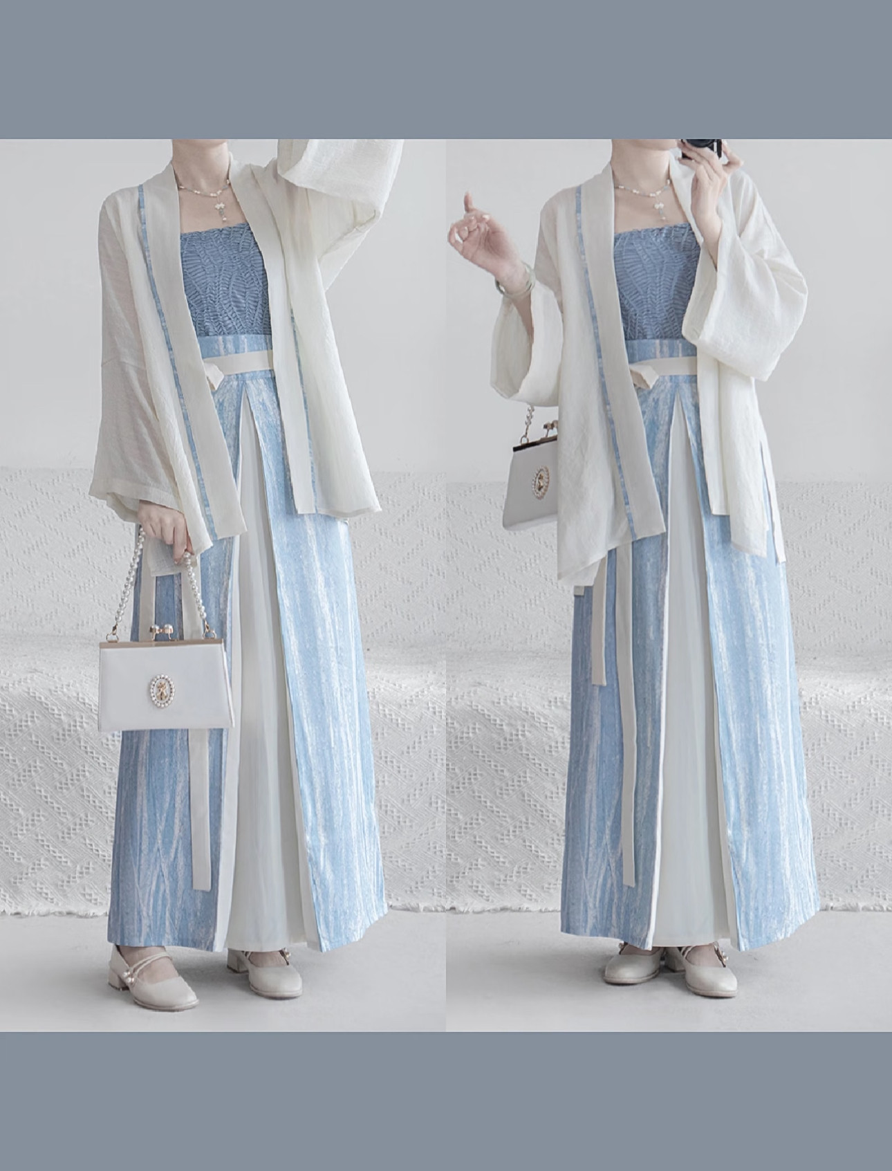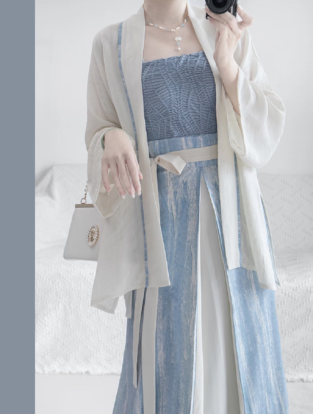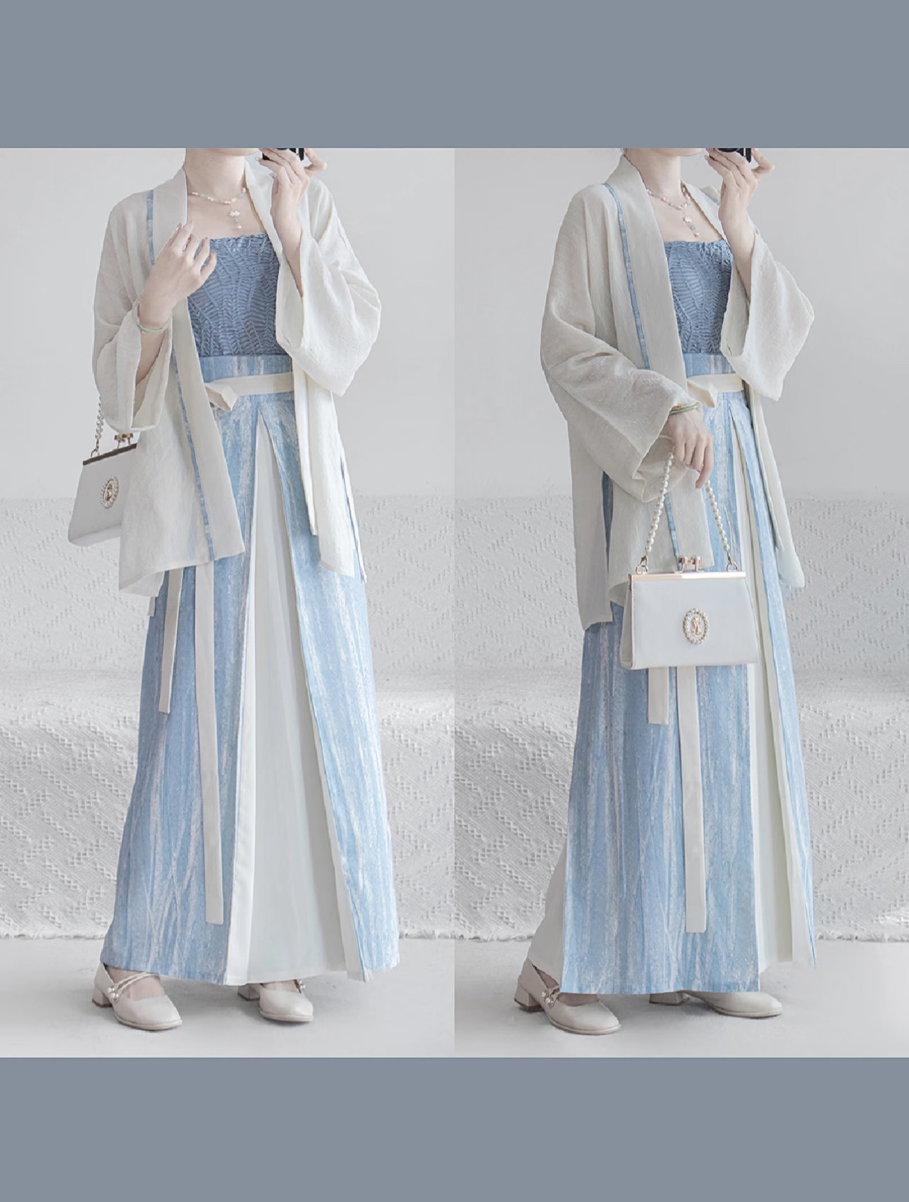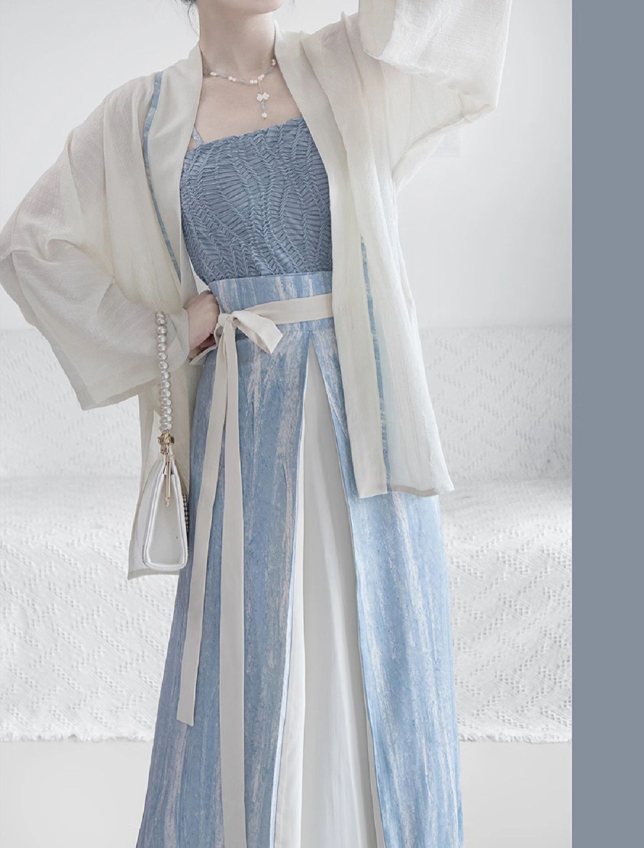 Color Options: 3-piece set (cross-collar top + camisole + three-panel skirt)