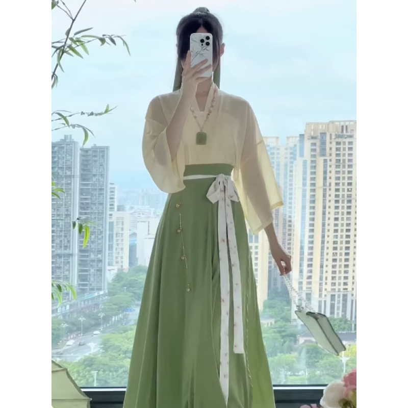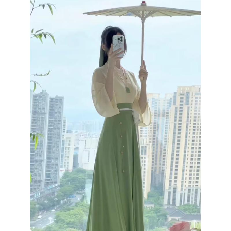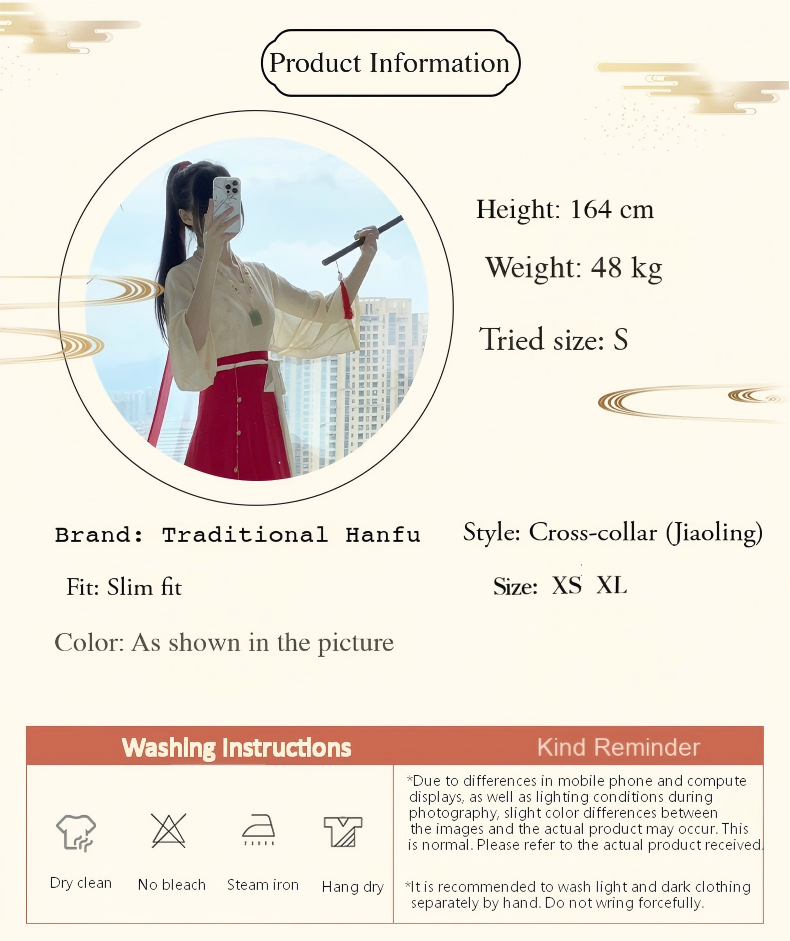 This adult Han-style casual outfit is made from 100% polyester, offering a lightweight, soft, and breathable wearing experience suitable for daily wear. The design blends traditional Hanfu elements with modern tailoring, preserving a classic aesthetic while ensuring practicality and comfort.