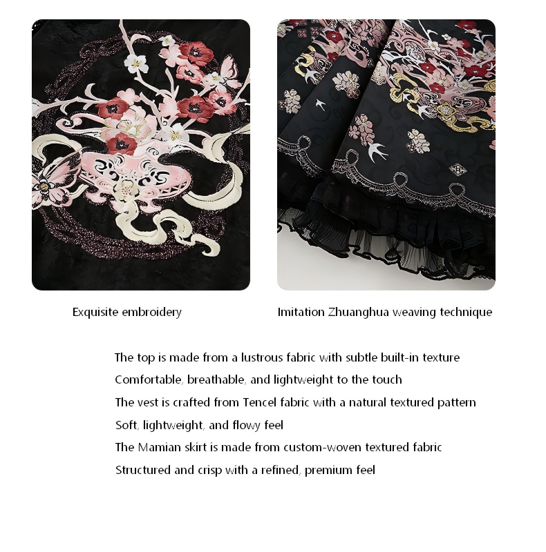 Delicate embroidery and imitation Zhuanghua weaving techniques enhance the layered, premium feel of the design, highlighting the unique charm of traditional Chinese fashion.