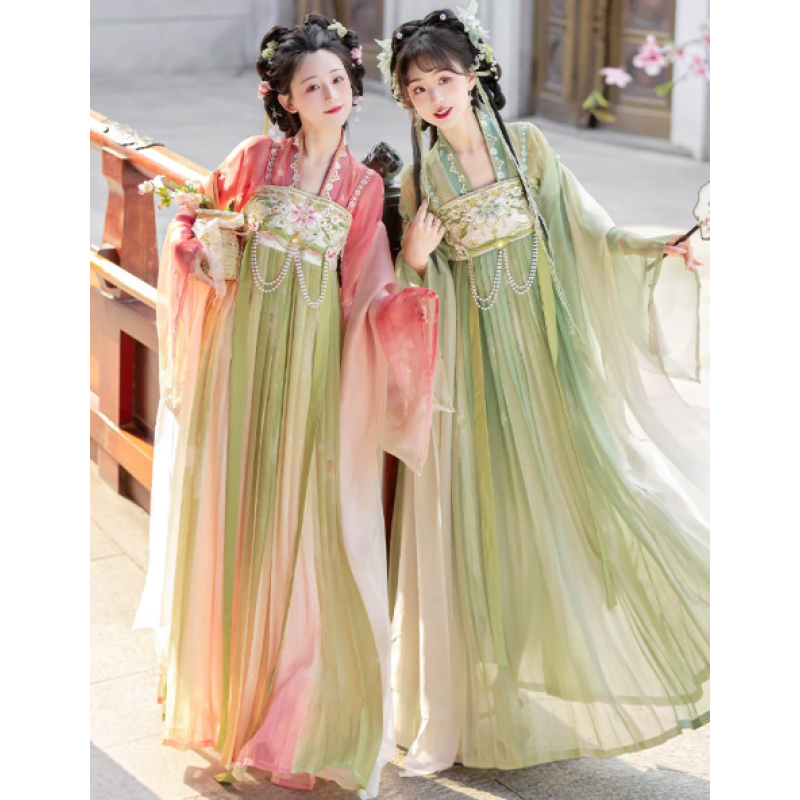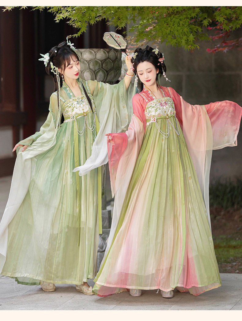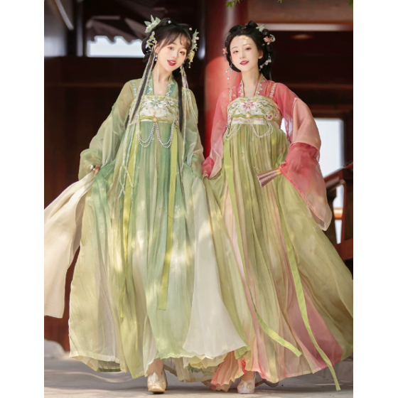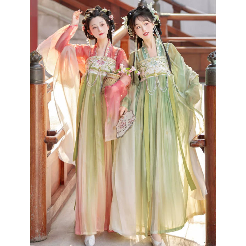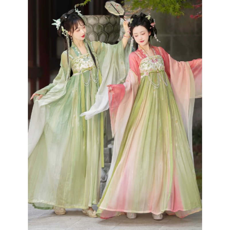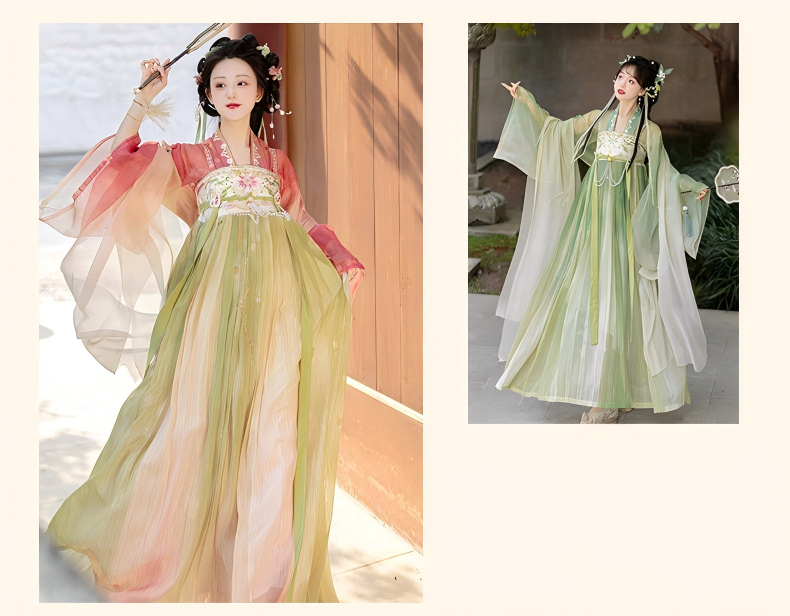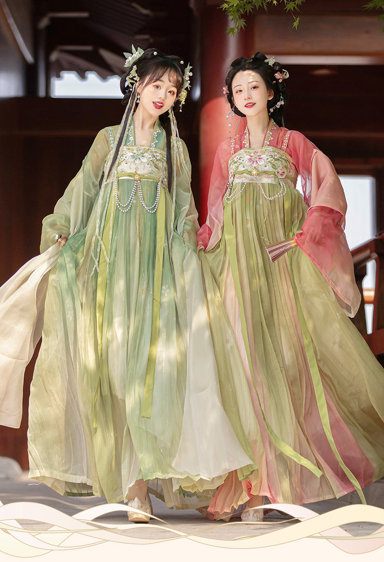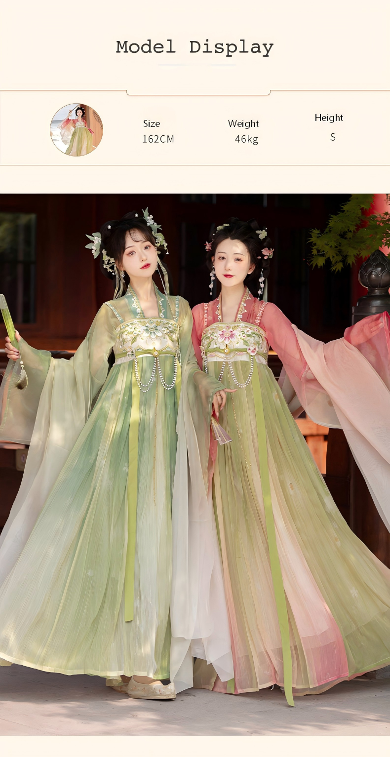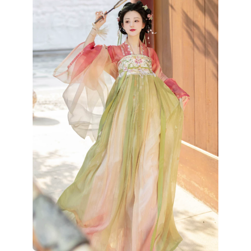 This Tang-style Hanfu-inspired outfit blends traditional elegance with modern aesthetics, showcasing a graceful and refined oriental charm. The set features a delicately embroidered front-opening short blouse with exquisite craftsmanship and a soft, harmonious color palette, offering both beauty and comfort. The finely designed cuffs add a touch of elegance and liveliness to the overall look.